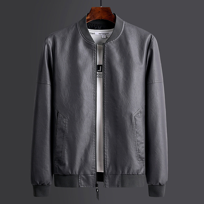 Men's Stand-up Collar Leather Jacket Colorblock PU Motorcycle Suit